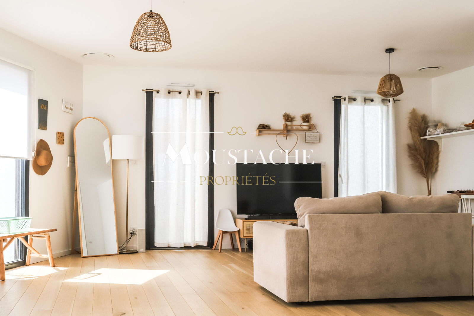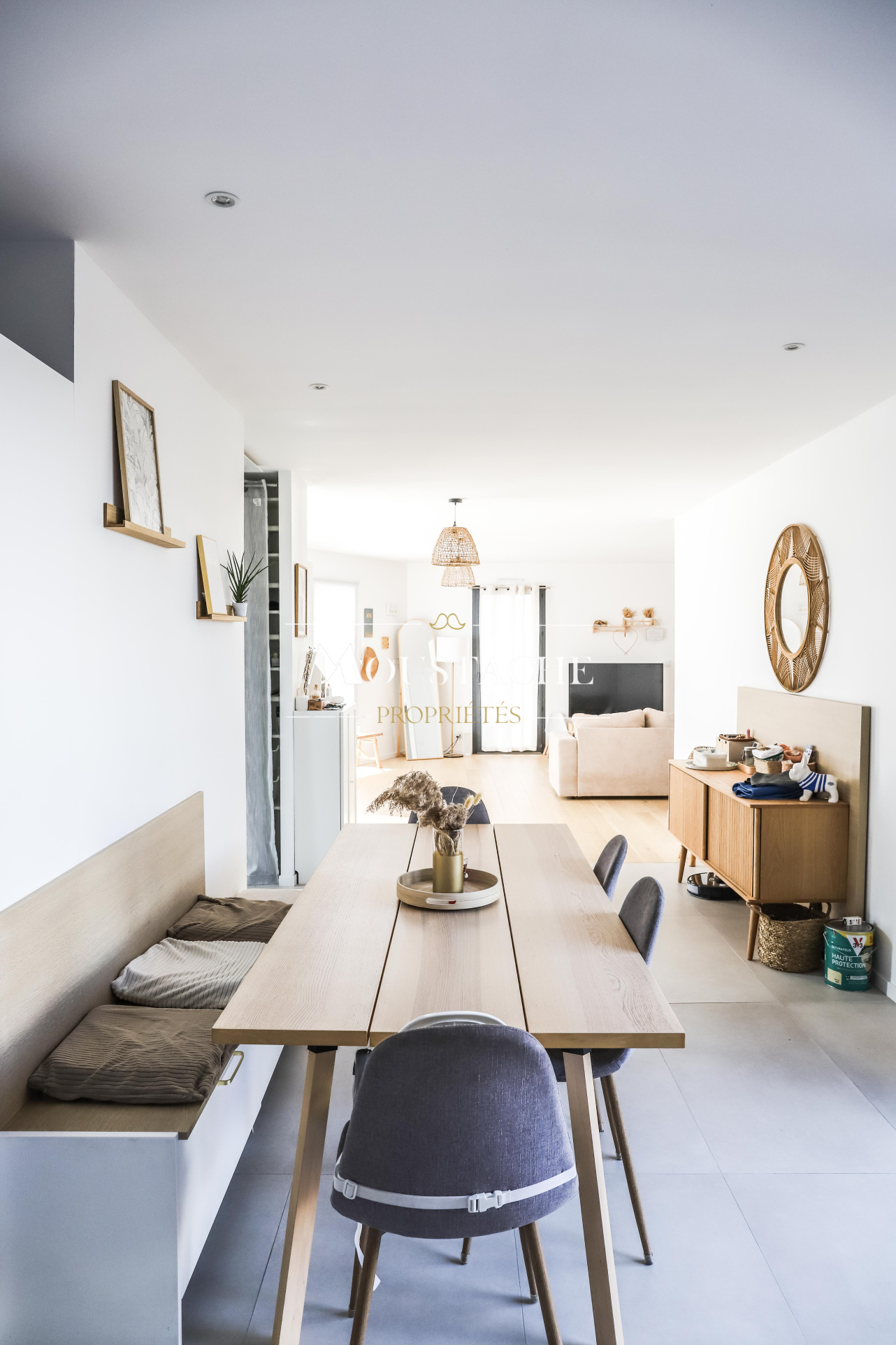 un bel espace de vie de 57m2 baigné de lumière grâce à de grandes ouvertures,