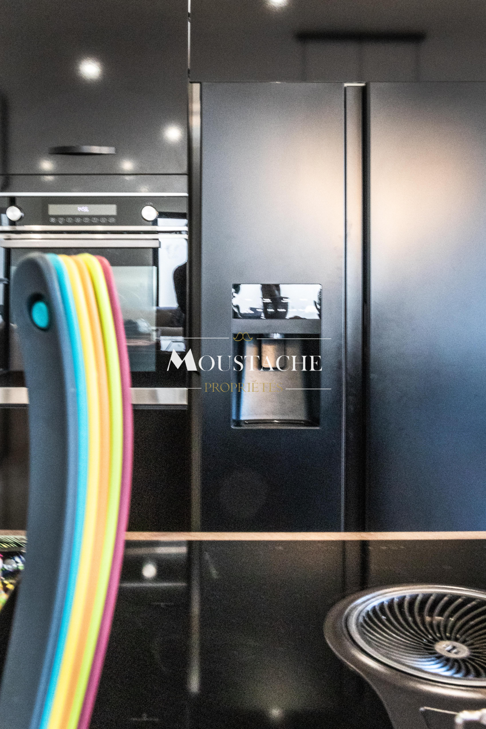 Dès l'entrée, la verrière au design épuré vous laisse entrevoir une spacieuse et lumineuse pièce de vie d'environ 60 m2, composée d'un vaste salon/séjour baigné de lumière naturelle par ses larges baies vitrées, ainsi qu'une magnifique cuisine américaine entièrement équipée.