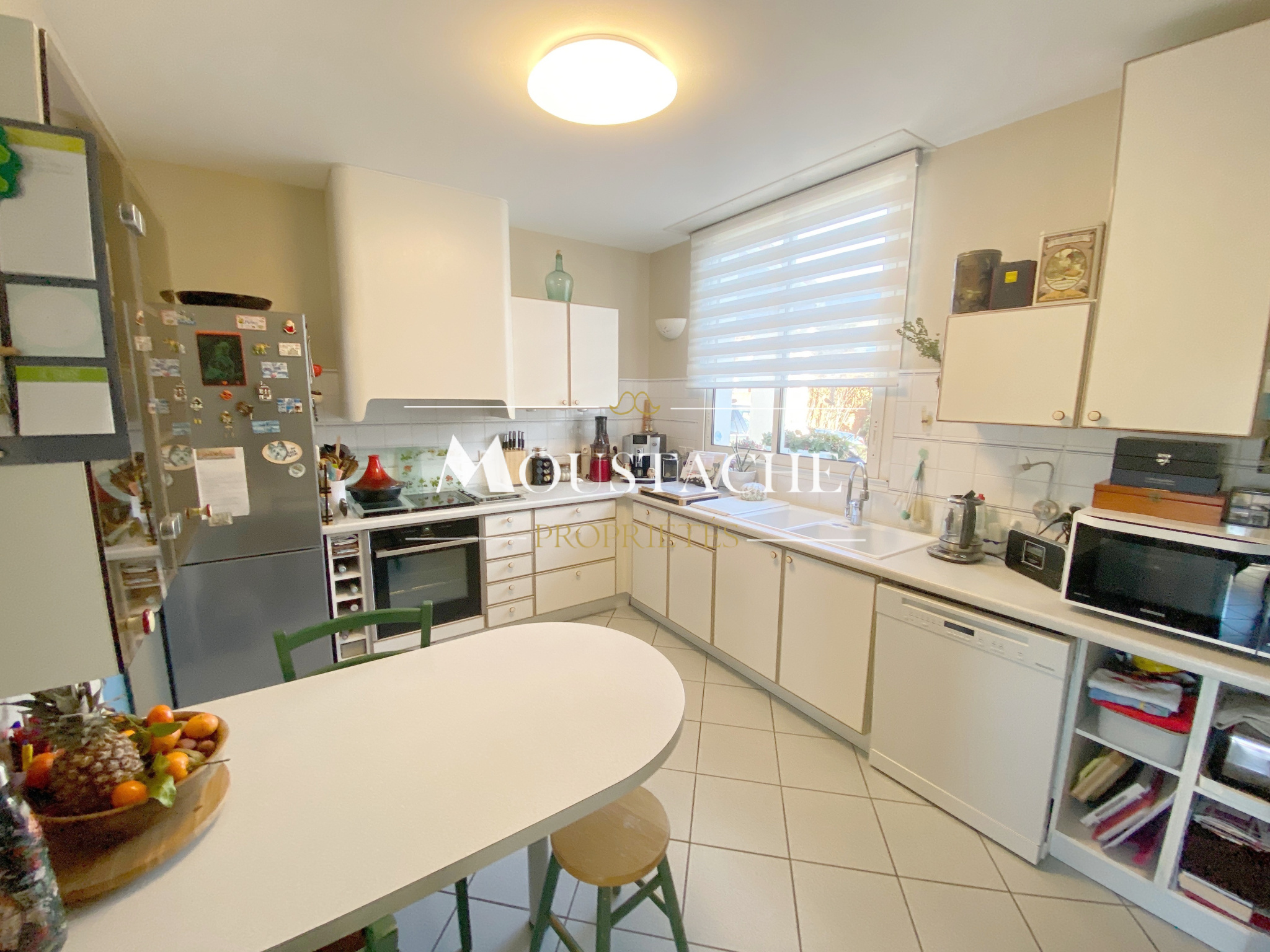 de plus de 40 m2 avec plafond cathédral, ouverte sur la terrasse ensoleillée et le jardin paysagé,