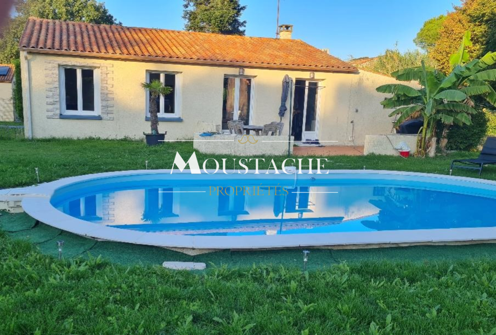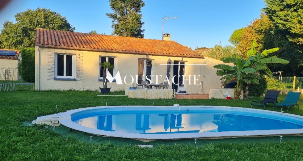 Maison de plain pied d'environ 100 M2 dans un environnement calme habité à l'année à environ 2000 m du centre de Breuillet. La maison comporte trois chambres, un séjour lumineux d'environ 31 m2 et une cuisine américaine semi équipée. Le terrain d'environ 1200 m2 heberge une belle piscine de 8 mêtres par 4 de moins de deux ans.