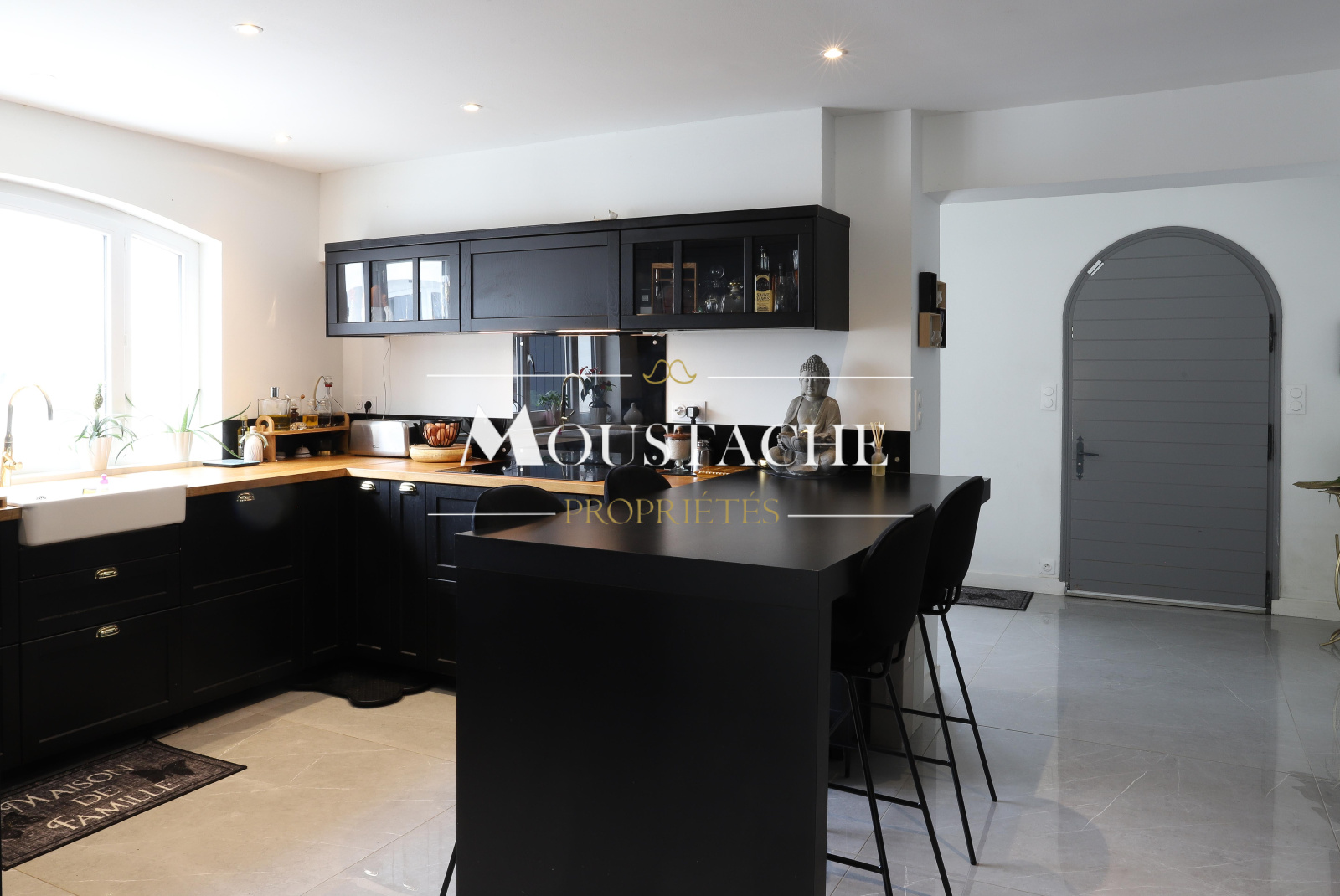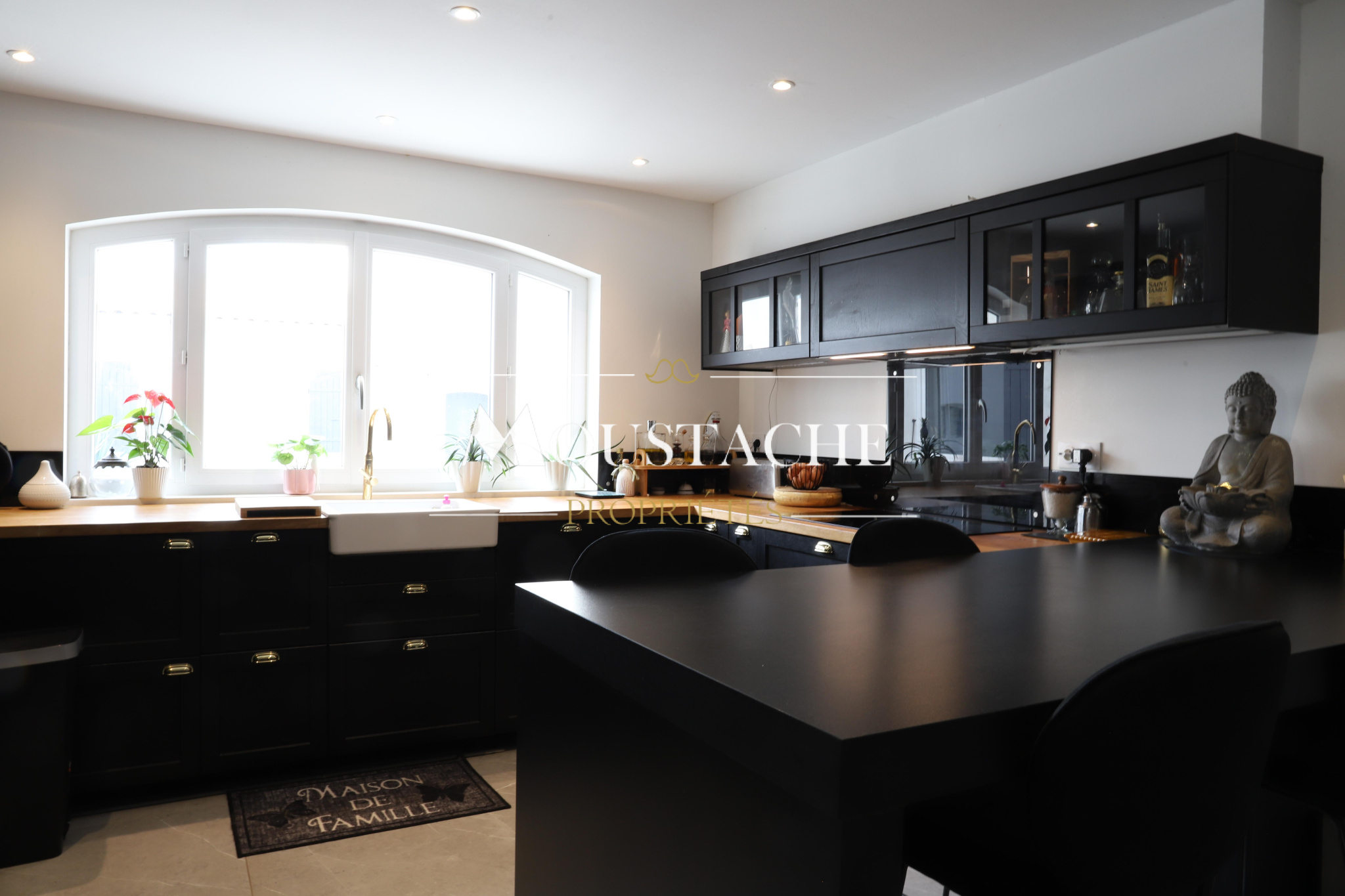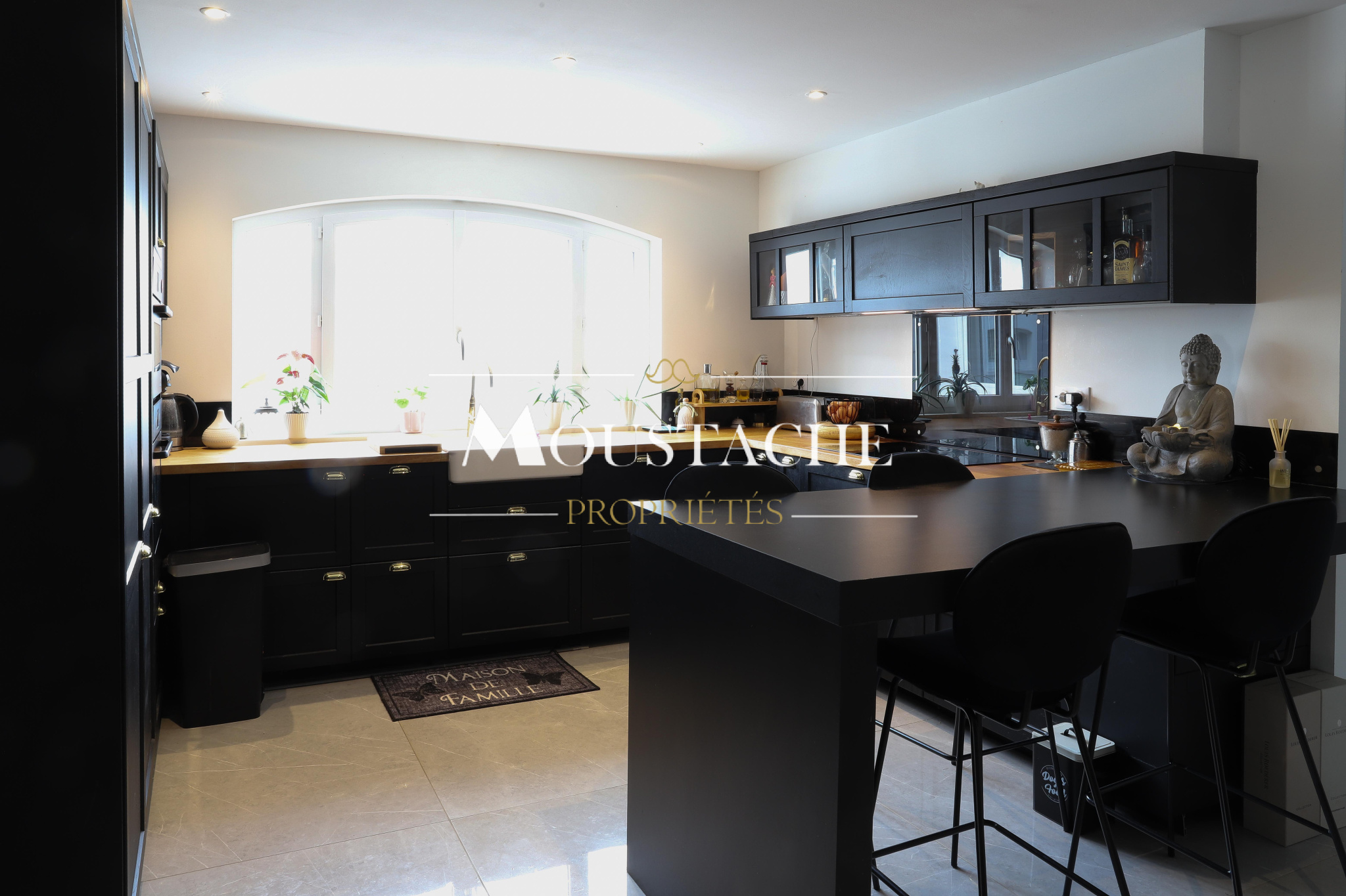 Une cuisine entièrement aménagée et équipée.