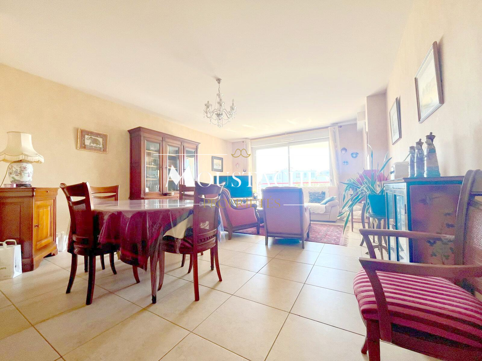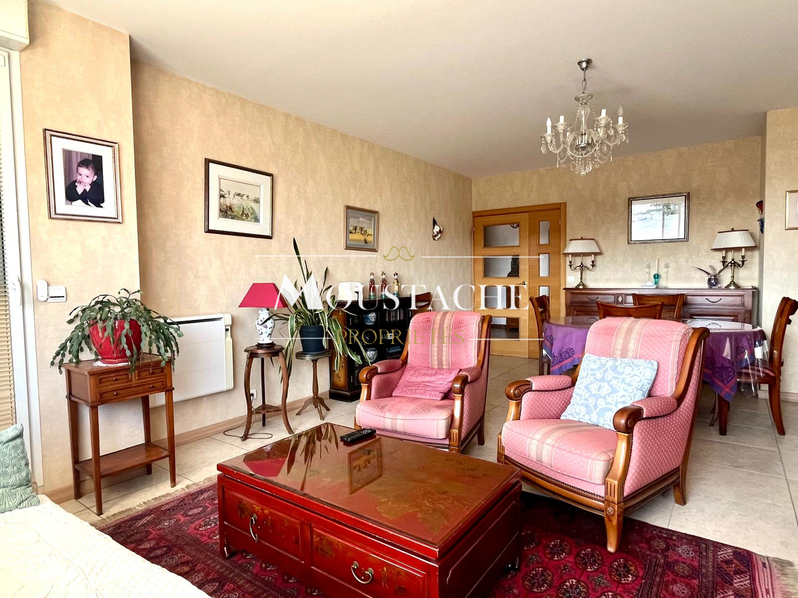 un vaste salon / séjour lumineux, donnant sur un premier balcon.