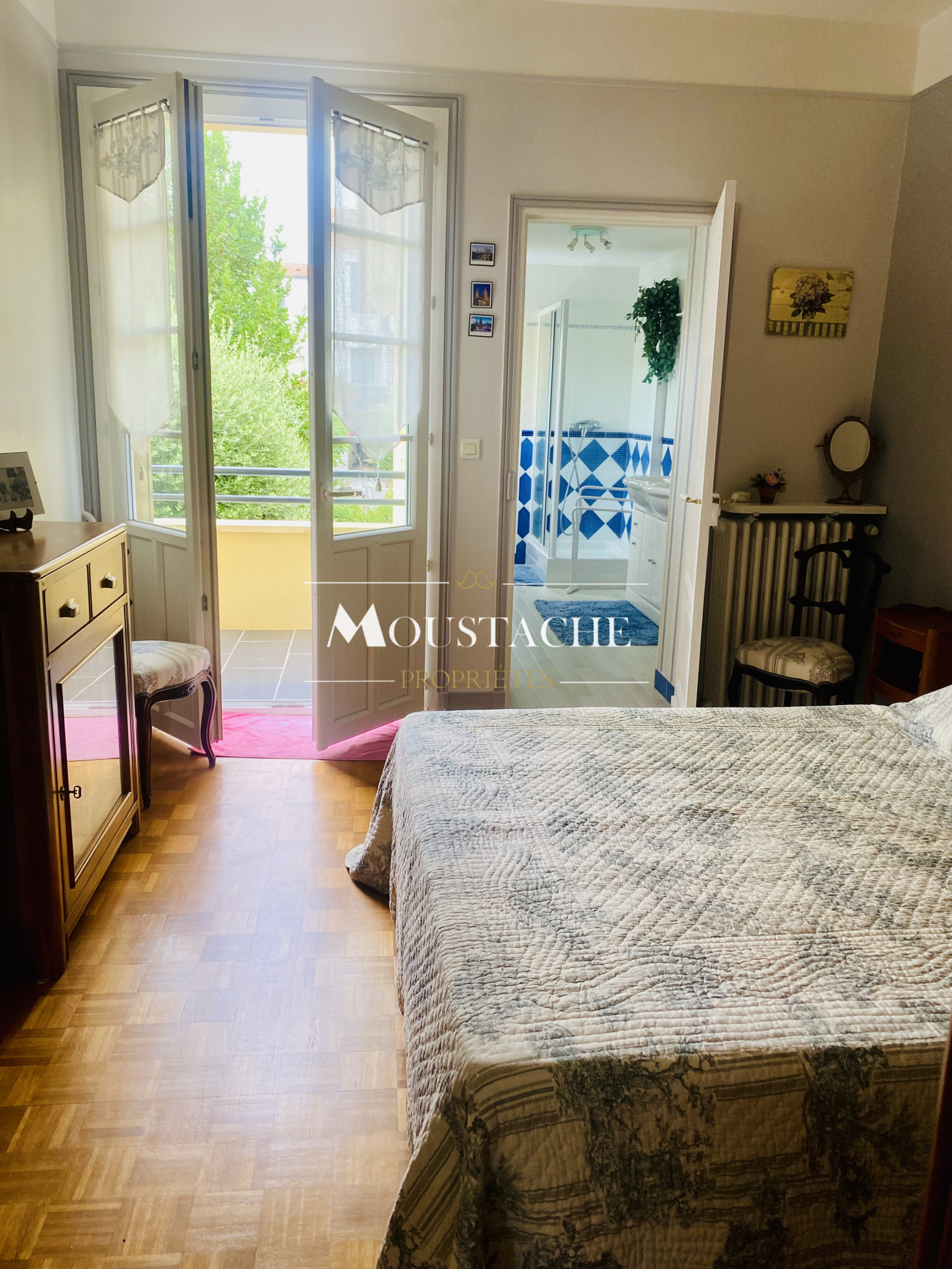 une chambre parentale ouvrant sur le balcon avec sa salle d'eau privative et WC,